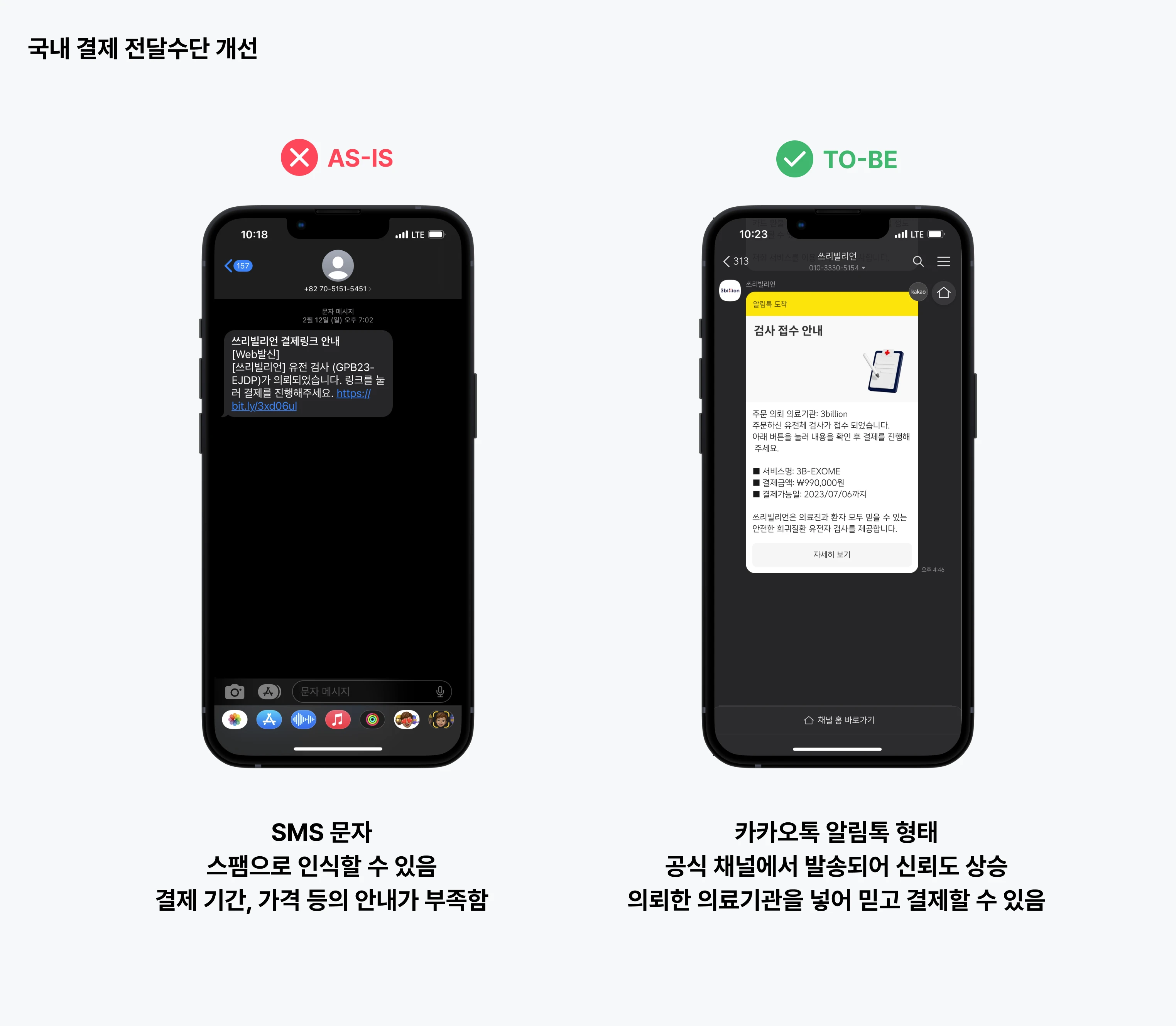그런데 낯선 회사에서 알아보기도 힘든 링크로 유도하면 고객 입장에서 확신을 갖고 누를 수 있을까? 우리가 보낸 안내가 고객에게는 스팸 문자로 인식되버리니 아예 못받았다고 생각할 수 있겠다 싶었다.
