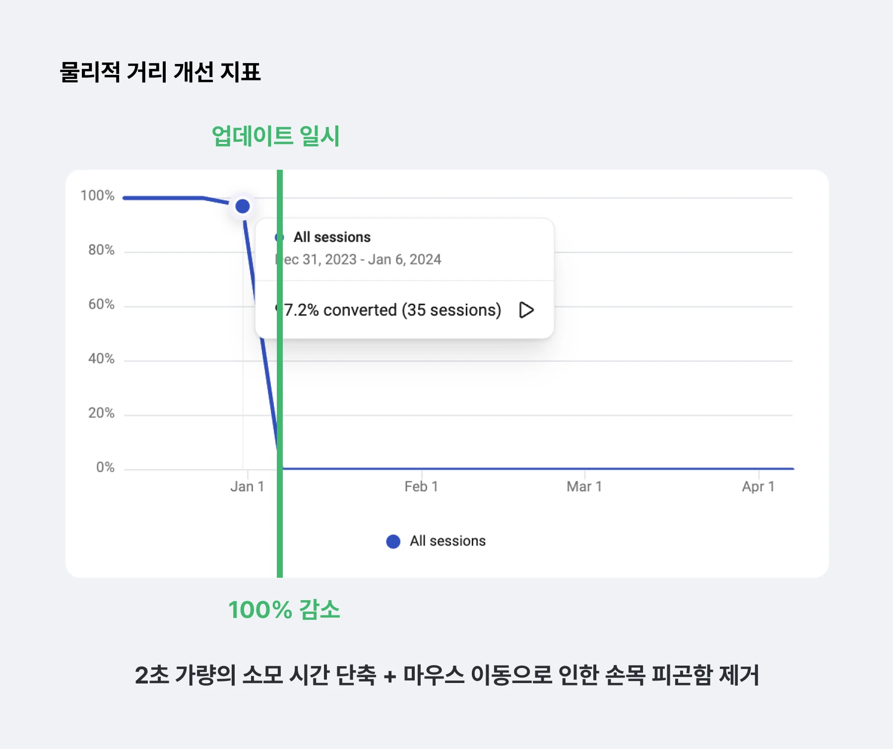 UI 수정 배포 후 아래와 같이 즉각적인 지표 개선을 확인할 수 있었다.