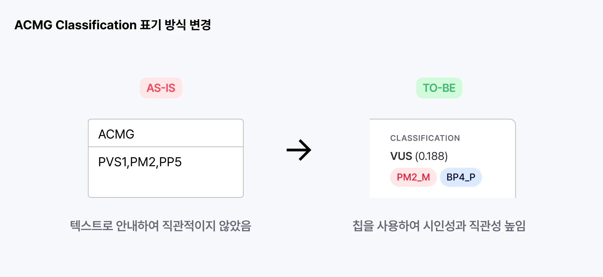특히 ACMG의 분류 체계처럼, 룰들의 조합을 통해 최종 해석이 결정되는 구조를 알게되었다. 이런 부분은 내부 변이 분석 UI를 기획할 때도 큰 도움이 되는 파트이기도 하다. 앞으로는 사용자가 기획안을 볼 때 틀린 데이터를 보고 그걸 먼저 지적하지 않도록, UI 자체에 대한 논의/개선이 우선시되는 '정확한 시안'을 누구에게 물어보지 않고 직접 그릴 수 있는게 바로 도메인 지식 강화의 즐거움 아닐까. ㅎㅎ
