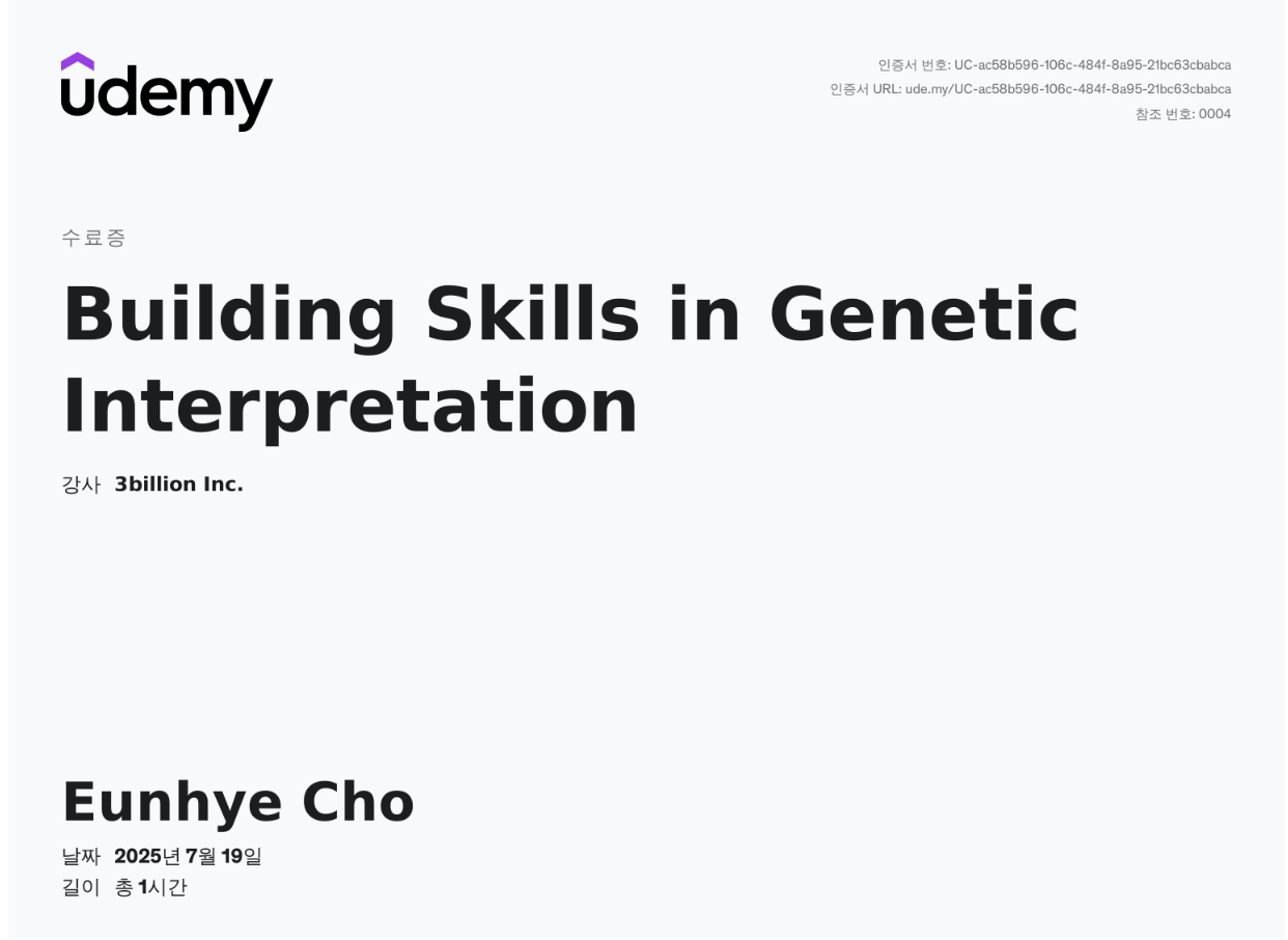 Building Skills in Genetic Interpretation 강의 수료UXUI 공부 2025. 7. 25. 17:43