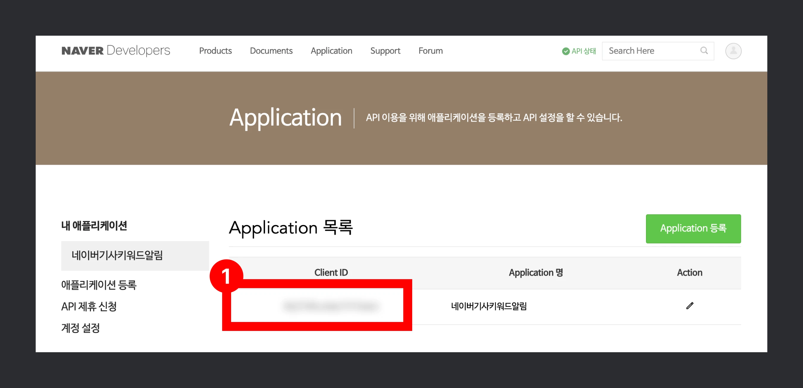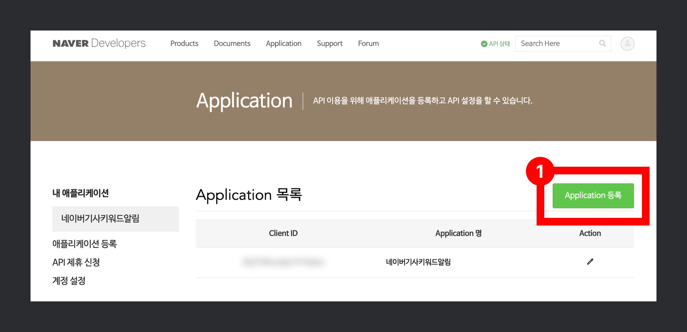 1. 네이버 개발자 사이트에 로그인 후 api를 신청한다.
