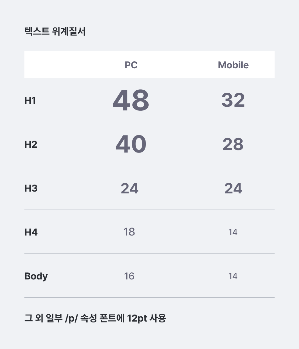 4. PC/Mobile의 text 위계 질서를 설정한다. (20분)