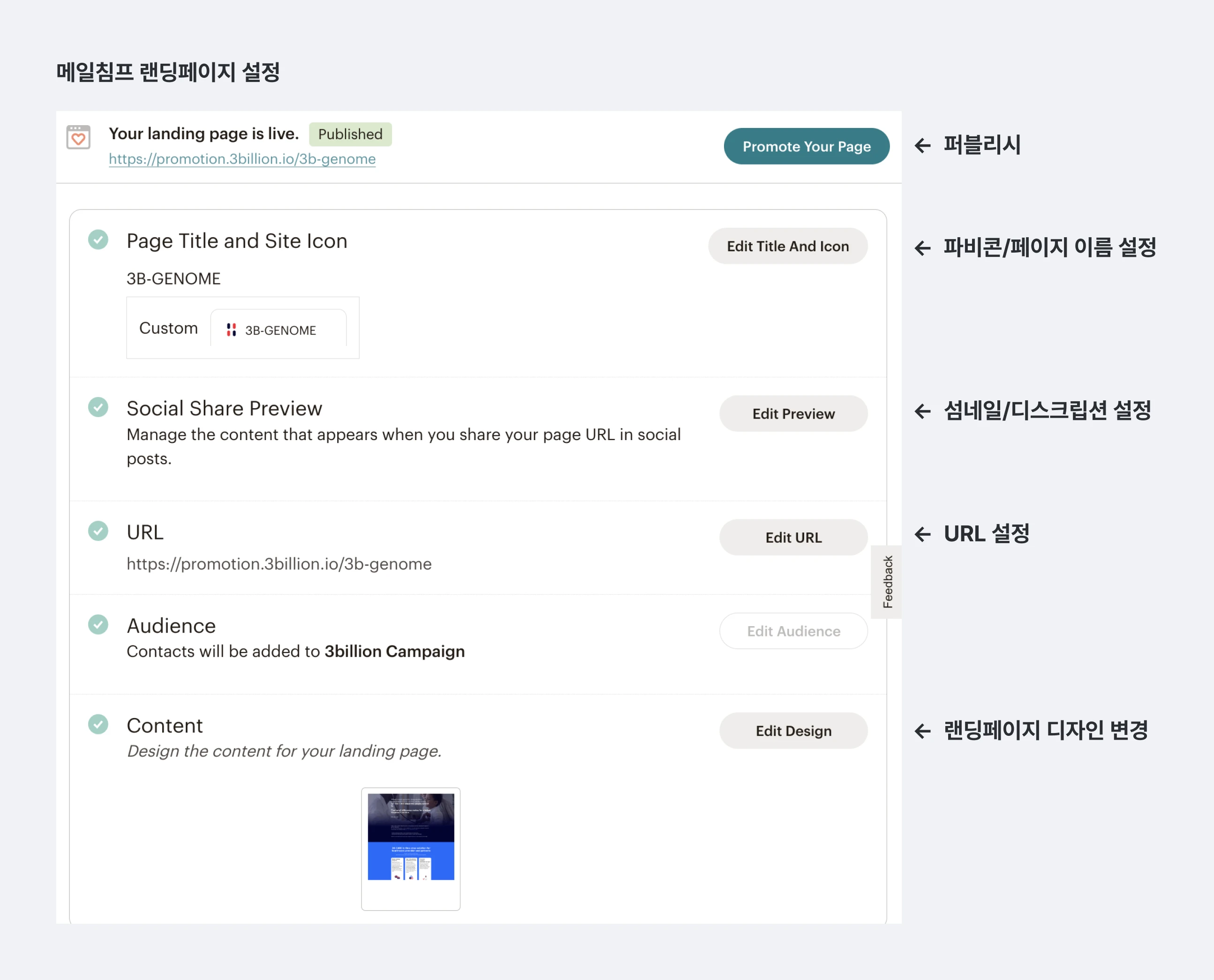 6. 랜딩페이지의 url 등을 설정하고 퍼블리시한다. 끝!